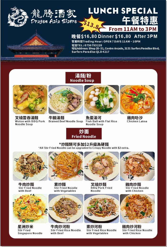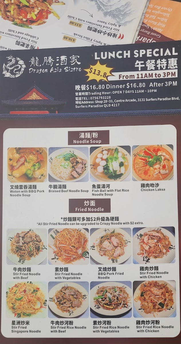 Introducing **Dragon Asia Bistro**, a hidden culinary gem nestled in the heart of Surfers Paradise, Australia. The bistro offers an enticing menu that seamlessly blends Asian flavors, making it a must-visit for food enthusiasts. Patrons rave about the affordability, with lunch specials at just $12.80, providing exceptional value without compromising quality.